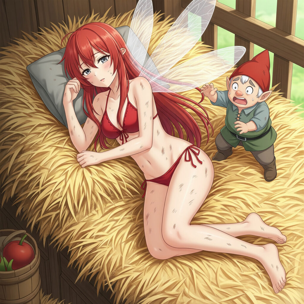 Als die Wächter Feenlands, die königliche Schutztruppe, alarmiert durch die magischen Signaturen, endlich eintrafen, fanden sie eine verblüffende Szene vor: Die Goblins saßen entwaffnet und friedlich in einem Kreis, während die Elfen ihnen Proviantbeutel packten. In der Mitte stand eine junge Blumenelfe im hellblauen Bikini und erklärte dem Goblin-Anführer auf einer Karte den Weg.