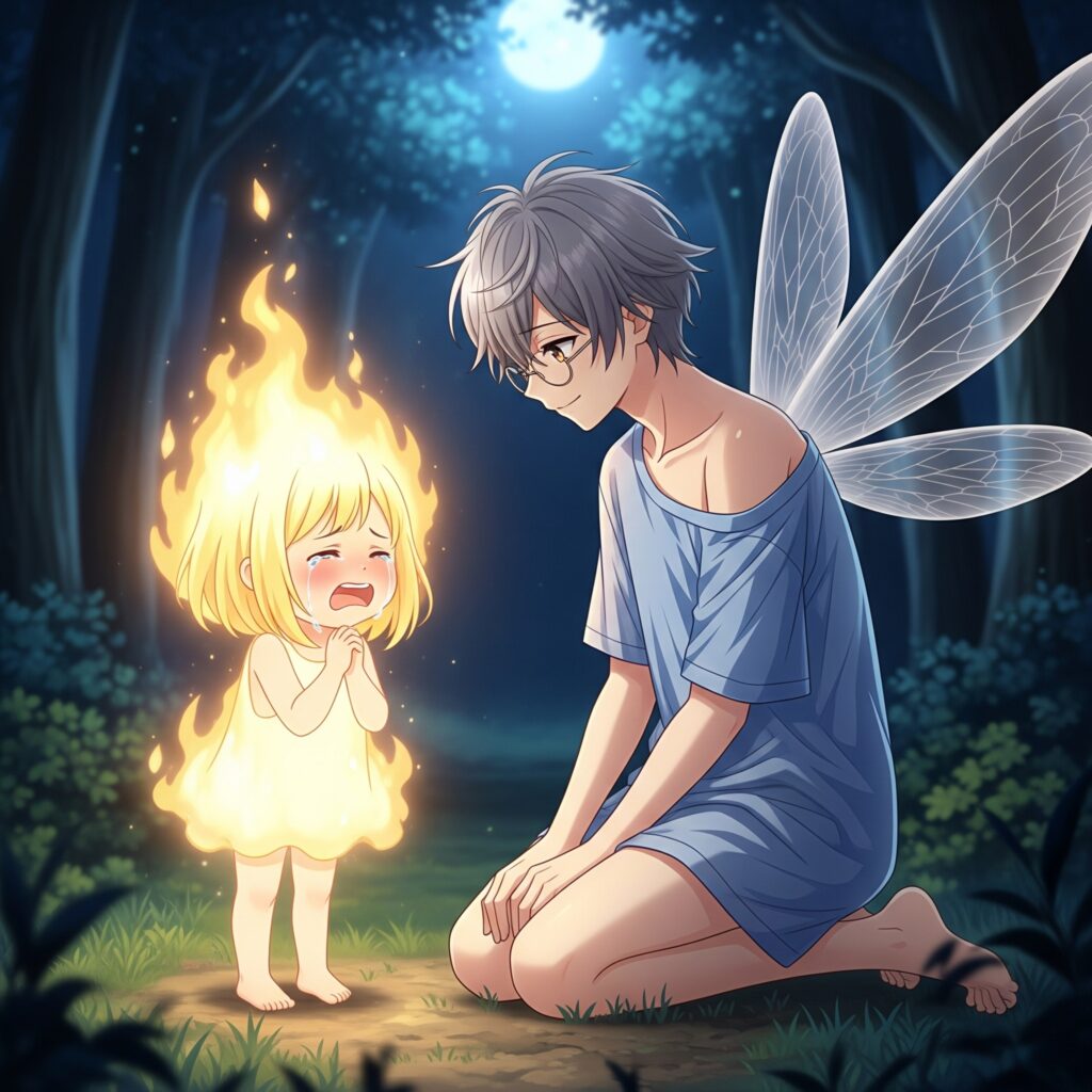 Doch die aufgeregten Rufe ihres Mannes von draußen und das Pochen ihres eigenen Herzens ließen ihre Ruhe schnell dahinschmelzen. Auch sie konnte ihre Ungeduld nicht länger zügeln. Sie ließ die Bürste fallen und eilte – ihre durchsichtigen, libellengleichen Flügel leicht flatternd – ihrem Gemahl hinterher.