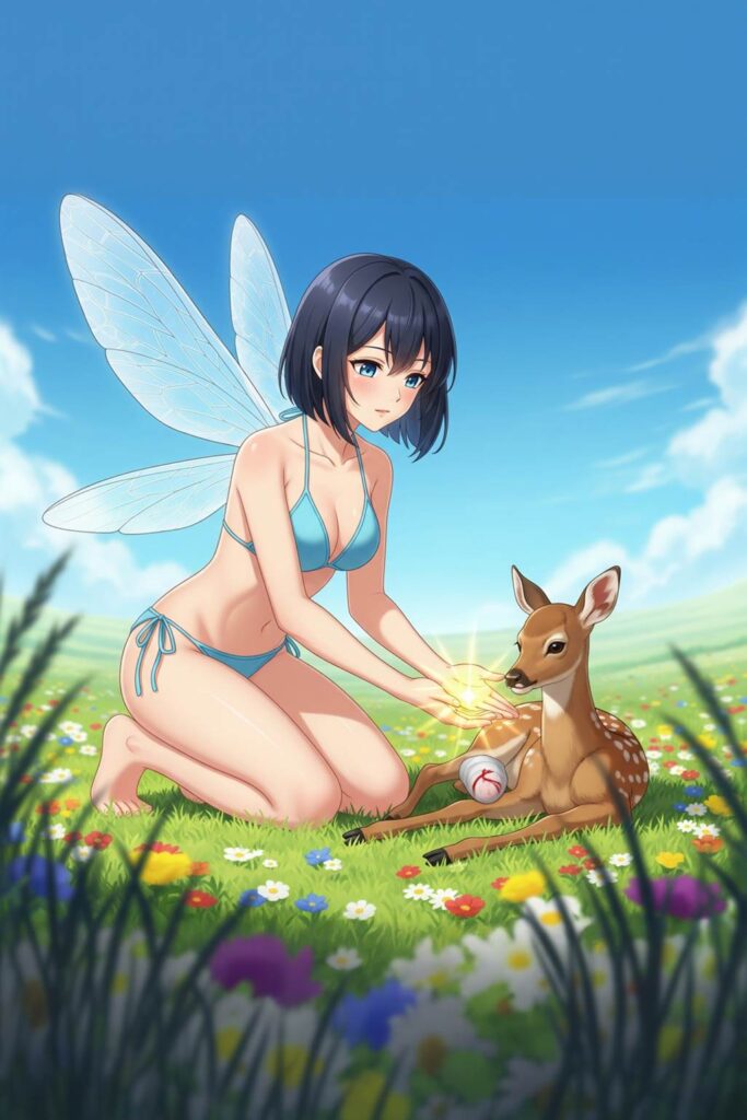 Einmal stürzte ein junger Blumenelf bei einem ungestümen Flug von einer Klippe in eine enge kaum zugängliche Felsspalte und brach sich ein Bein. Während die anderen los flogen, um Seile und Hilfe zu holen, seilte sich Funny mit einer selbstgeknüpften Lianenschlinge zu ihm ab. Sie blieb die ganze Nacht bei ihm, sprach ihm Mut zu und nutzte ihre angeborene Magie, um eine schützende Wärmeaura um ihn zu legen und den Schmerz zu lindern. Ihre Magie war wie die aller Blumenelfen speziell. Auch sie konnte keine Feuerbälle schleudern oder Blitze rufen. Aber sie konnte Wunden schließen, Schmerz stillen, Pflanzen zu schützenden Barrieren wachsen lassen und den Geist beruhigen. Sie war eine Meisterin der Verteidigung und der Förderung des Lebens und sie lernte schon früh, diese passiven Kräfte auf aktive und clevere Weise zu nutzen.